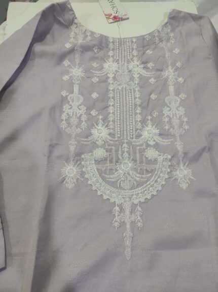 SOHAYE is a brand name associated with various clothing collections, including embroidered shirts and kurta sets. The lilac embroidered shirt in the image is a style that can be found in several of these collections. The intricate embroidery and color are characteristic of Pakistani and Indian ethnic wear, often featured in collections by brands like Soha, Sohaye, and Soha Sultan.