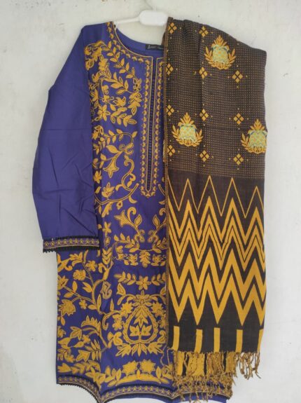 Collection Type: Heavy Embroidered Dyed Khaddar (Slub) Shirt - Basic Yarn Dyed Acrylic Shawl Dupatta