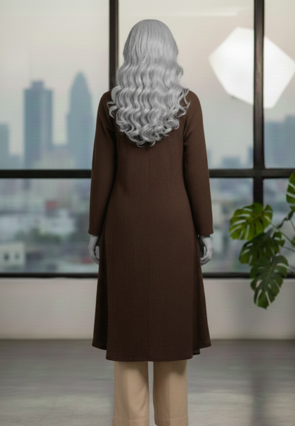 Intricate Cuff Detailing: The 3/4 length sleeves are finished with a broad, contrasting patterned border, adding a luxurious touch.