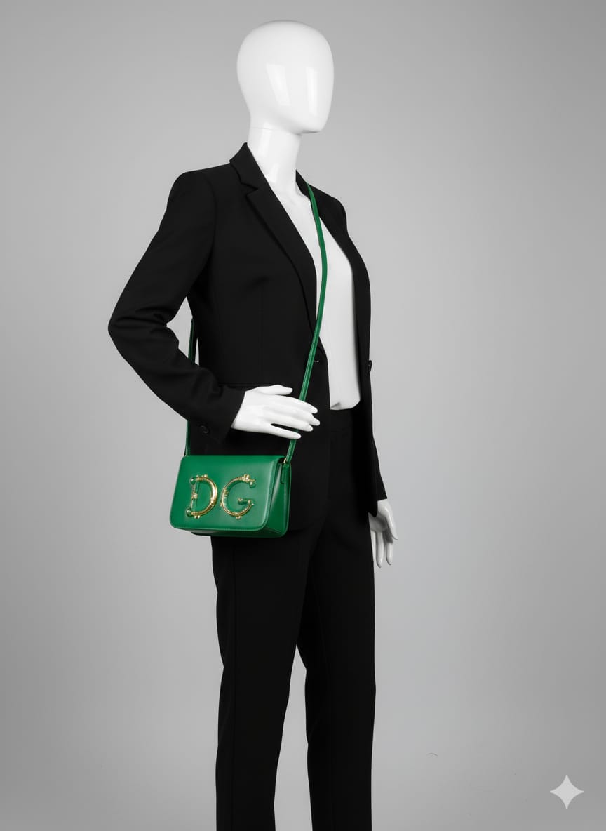 – Logo: Prominent Dolce & Gabbana logo or metal initials (“DG”) on the front, sometimes adorned with jewels or decorative details.