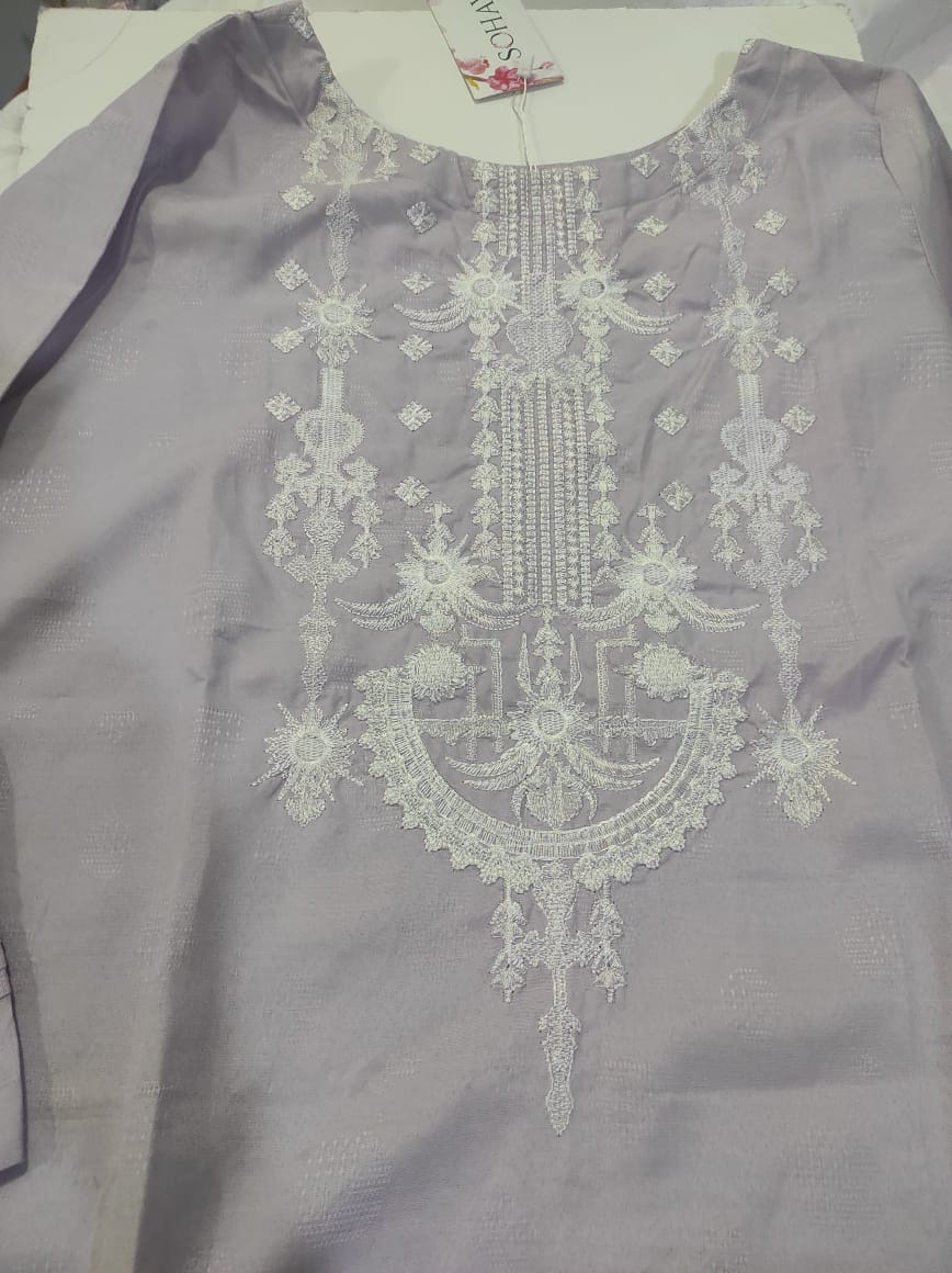 SOHAYE is a brand name associated with various clothing collections, including embroidered shirts and kurta sets. The lilac embroidered shirt in the image is a style that can be found in several of these collections. The intricate embroidery and color are characteristic of Pakistani and Indian ethnic wear, often featured in collections by brands like Soha, Sohaye, and Soha Sultan.Â