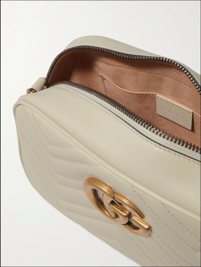 The GG Marmont, a signature collection of the House, features the emblematic Double G, a faceted chain strap, and contemporary silhouettes. The new camera bag highlights fine craftsmanship with exceptionally supple leather and intricate hardware details in light gold-toned finish.