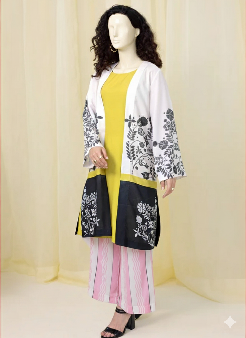 Tunic Style: Straight-cut, knee-length Kurta with side slits.