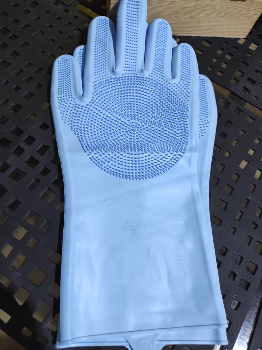 Wear the gloves, rub and form bubbles from detergent easily with only few drops.