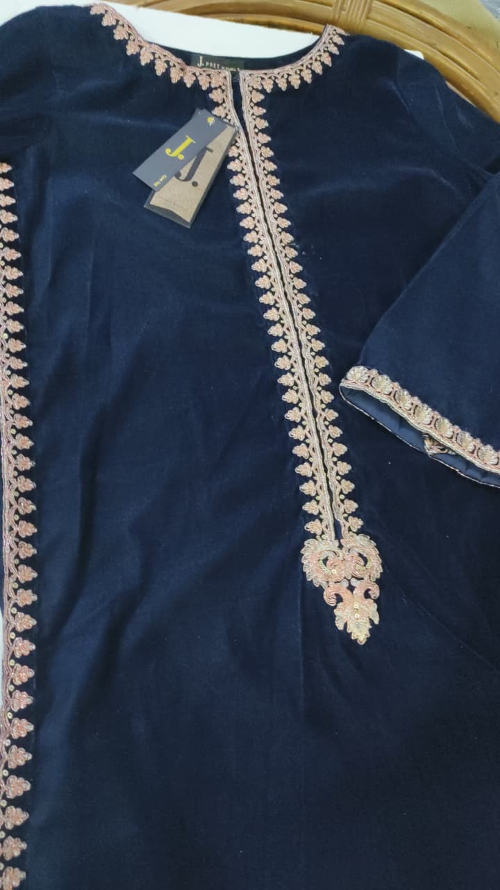 Be the first to review “Navy Blue Velvet Embroidered Pret.” Cancel reply