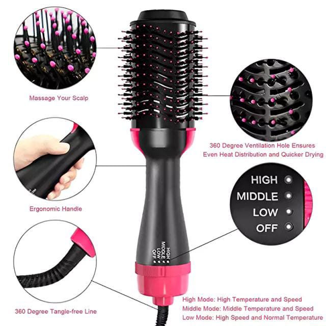 One-Step Hot Air Brush – 3 in 1 Hair Dryer, Straightener & Comb | One-Step Styling Brush for Women