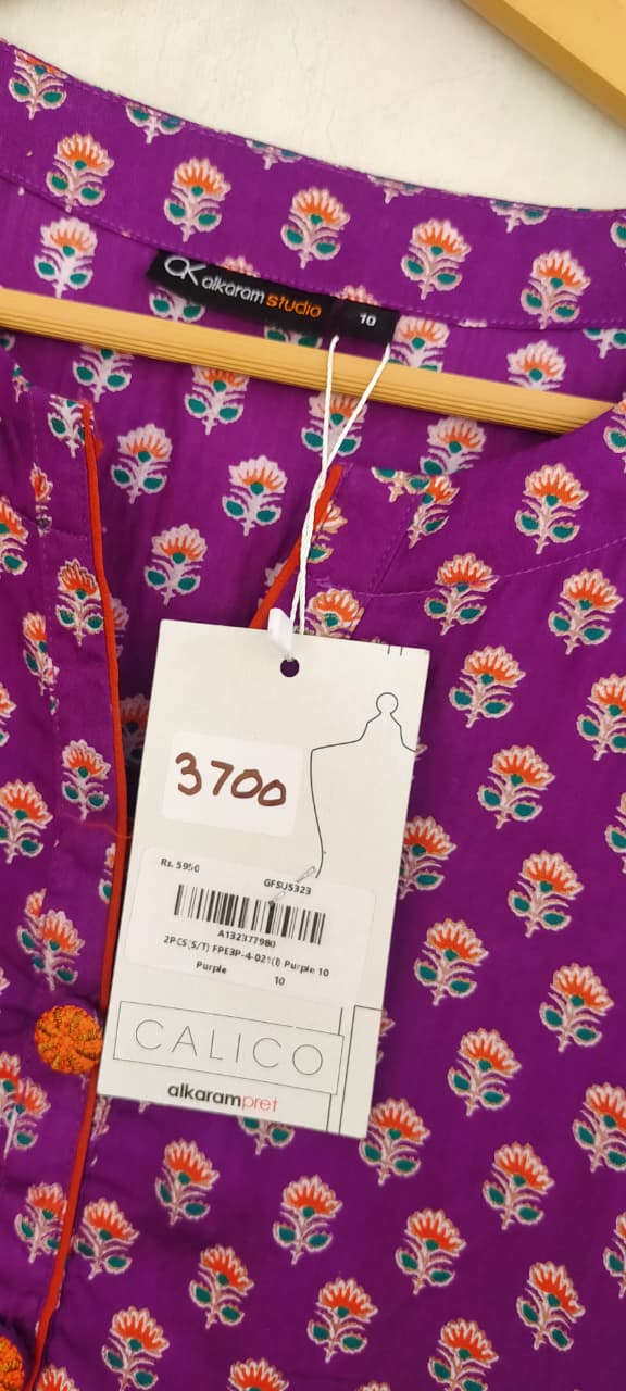 Purple Printed Lawn kurta