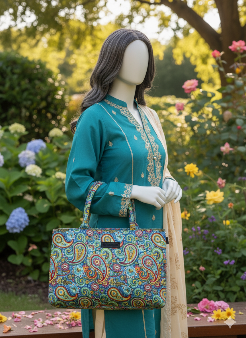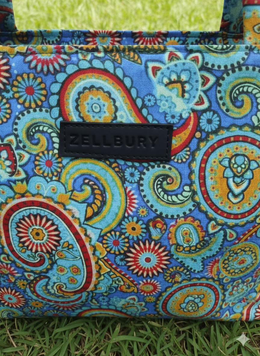 This vibrant Zellbury canvas tote bag is a beautiful blend of practicality and bohemian charm. Featuring a rich, multi-colored paisley pattern dominated by cheerful blues, reds, and yellows, it’s the perfect accessory to brighten up any day. The structured design and sturdy carry handles offer ample space for your daily essentials, making it an ideal choice for a casual outing, a trip to the market, or adding a pop of color to your everyday work attire.